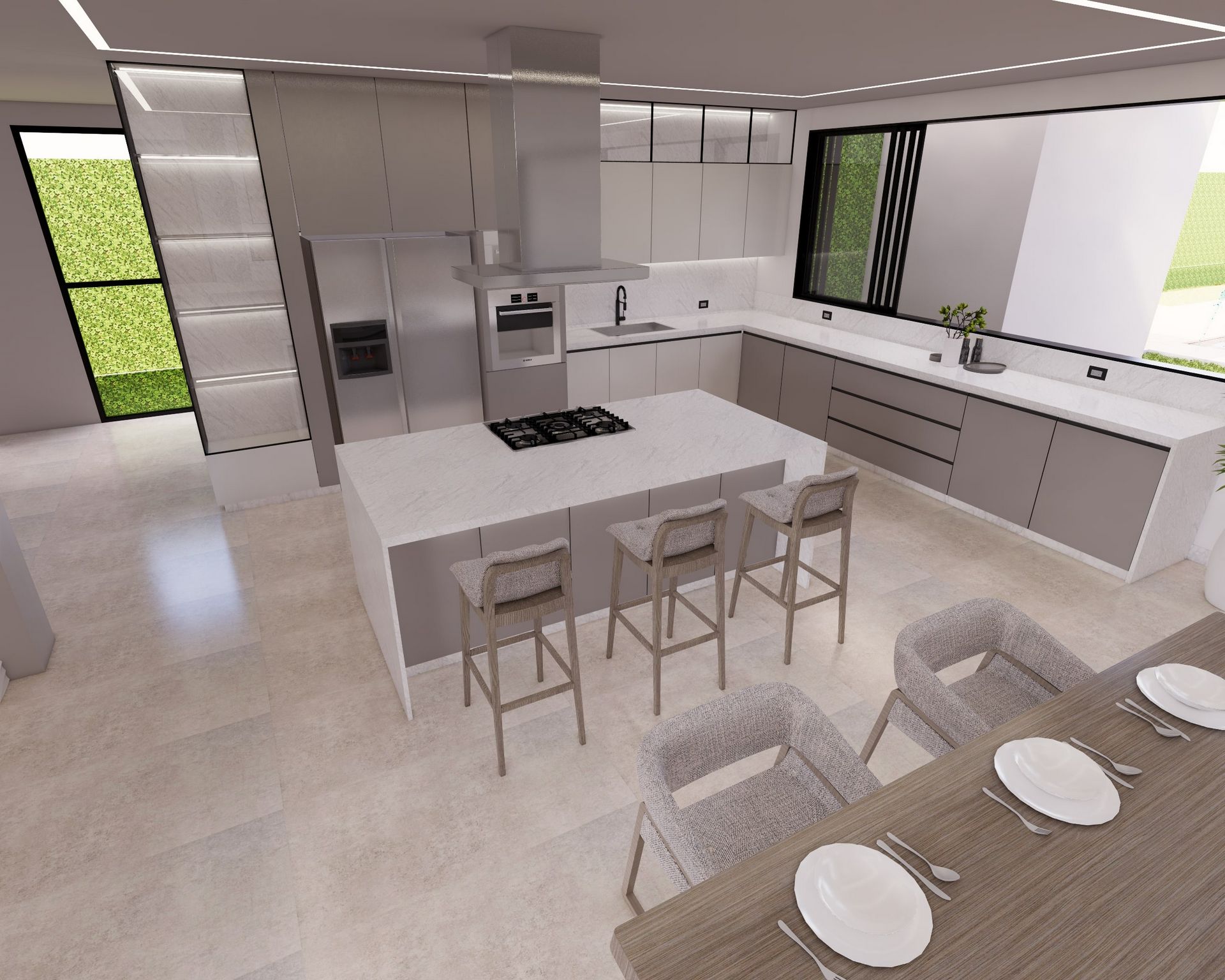 Nuestros Renders 3D se someten a diversos procesos, que con el uso de técnicas de texturizado de materiales, iluminación, distribución, así como técnicas fotográficas, crean una serie de efectos ópticos que se asemejan a una situación específica en el mundo real, dando como resultado una imagen Fotorrealista.